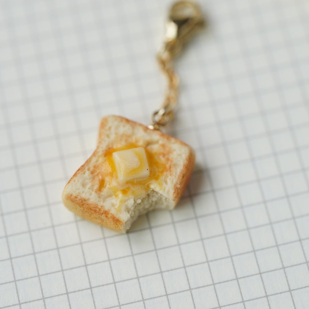 一口かじった食べかけバタートーストのボールペンチャーム。